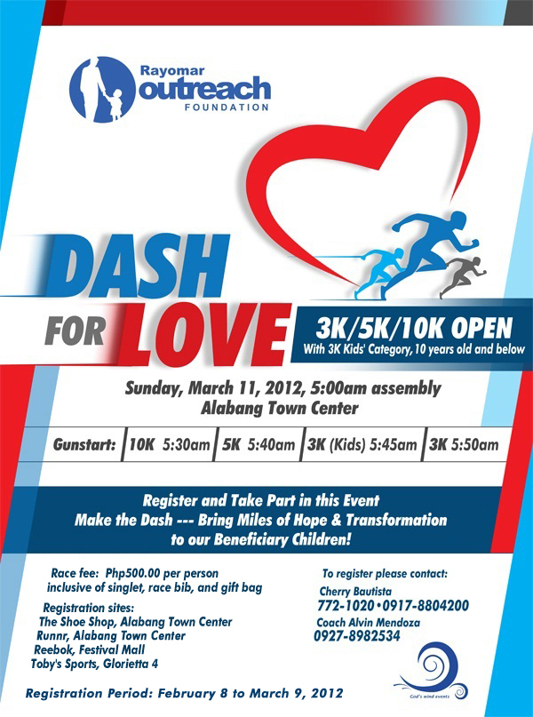 Rayomar Outreach Foundation presents.. Dash for Love Fun Run! Make the Dash and bring miles of Hope and Transformation to their Beneficiary Children! Check it out!
