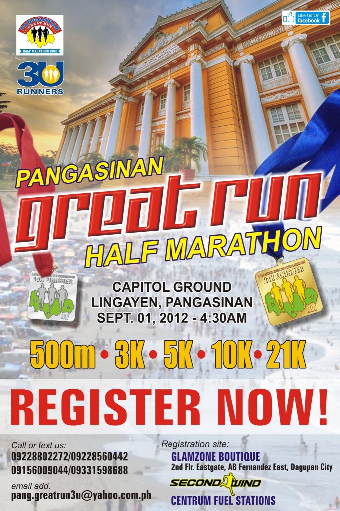 A GREAT PLACE and A GREAT TIME TO RUN….PANGASINAN GREAT RUN on September 1, 2012 (Saturday) at LINGAYEN, Pangasinan, this event is open to all.
