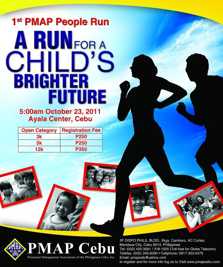 1st PMAP Cebu People Run. A Run for a Child’s Brighter Future happening on October 23, 2011 at the Sulimon Cebu Business Park, Cebu City, Check out the details here!