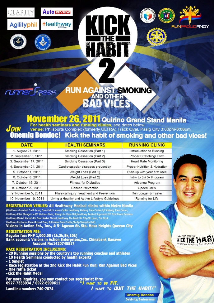 – Registration at the Kick the Habit 2 to be held on November 26, 2011 at Quirino Grandstand