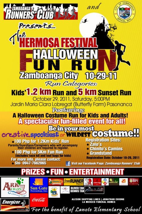 Join this Halloween Costume Fun Run for Kids and Adults happening in Zamboanga City on October 29, 2011 brought to you by the Zamboanga Runner’s Club! Details Here!