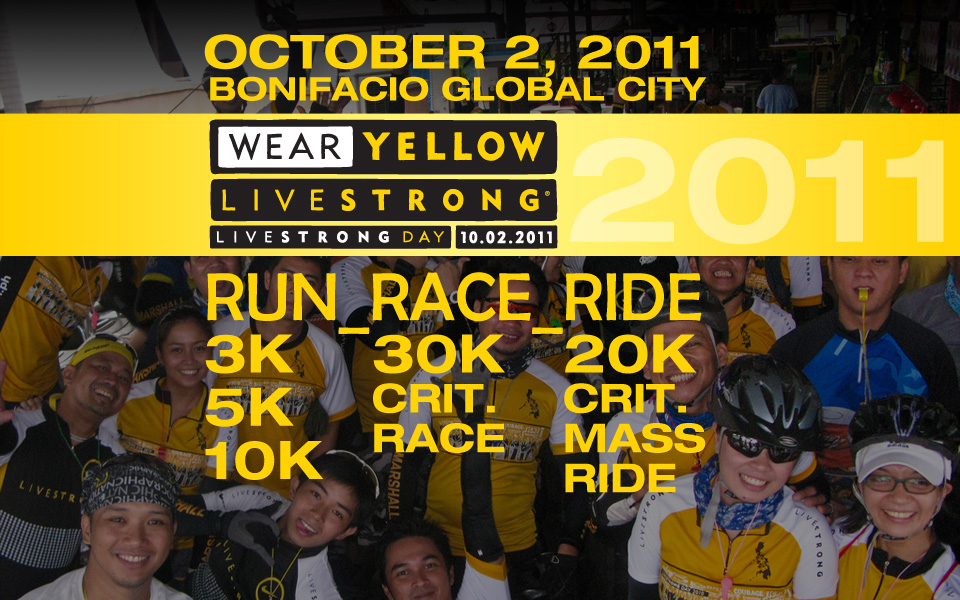 Congratulations to all finishers of the Livestrong Day Philippines 2011 that happened on October 2! Race Results and Photo Links will be updated here once they are released by the organizers.