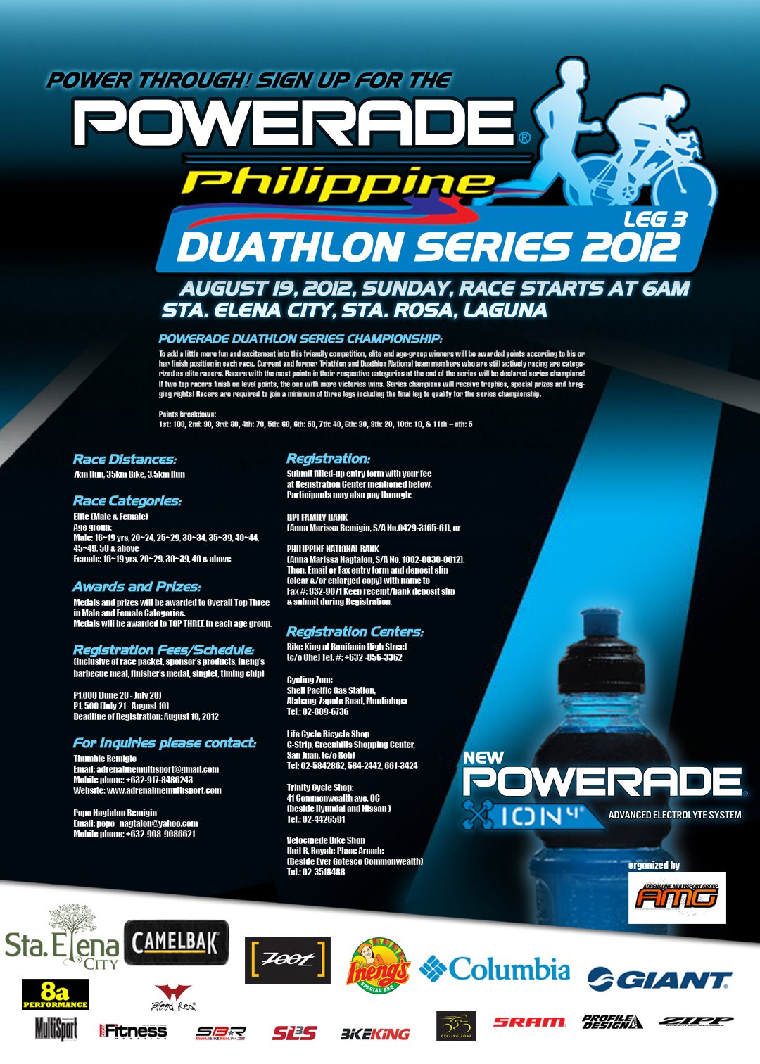 Check out the details of Powerade Philippine Duathlon Series 2012 – Leg 3 happening this August 19, 2012 at Sta. Rosa, Laguna!