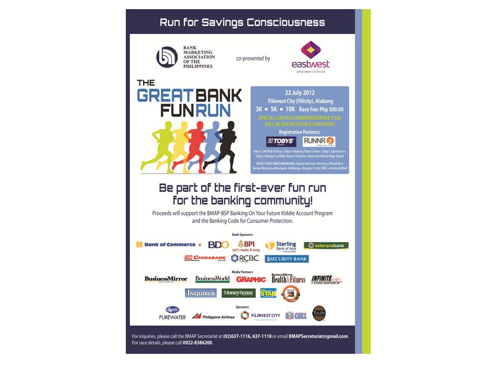 Thanks everyone for the nice comments and reviews about the run yesterday. On behalf of the BMAP Board, I thank everyone for coming! Til next bank run, este, bank fun run!