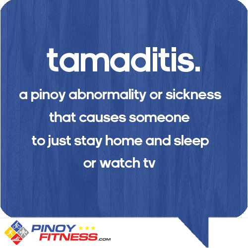 Time to beat Tamaditis! By PF Editoral - 1005 Share FacebookTwitterViberWhatsAppTelegramEmailCopy URL Fitness Quote: “TAMADITIS. a pinoy abnormality or sickness that causes someone to just stay home and sleep or watch tv”