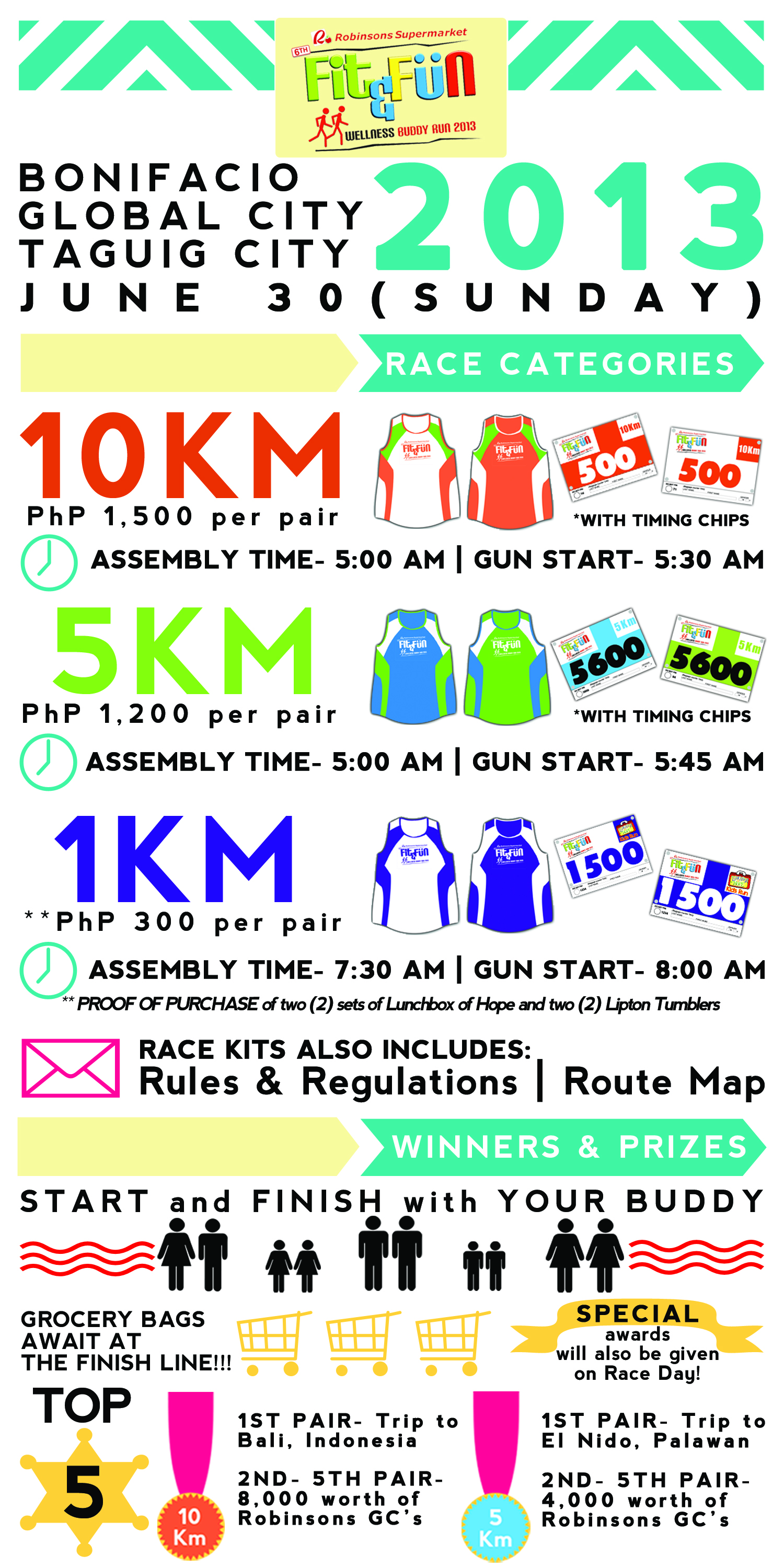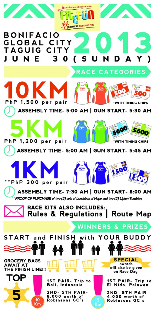 The Robinsons Supermarket Fit & Fun Wellness Buddy Run is on it’s 6th year. Run with your buddies and finish the race together. Save the date!