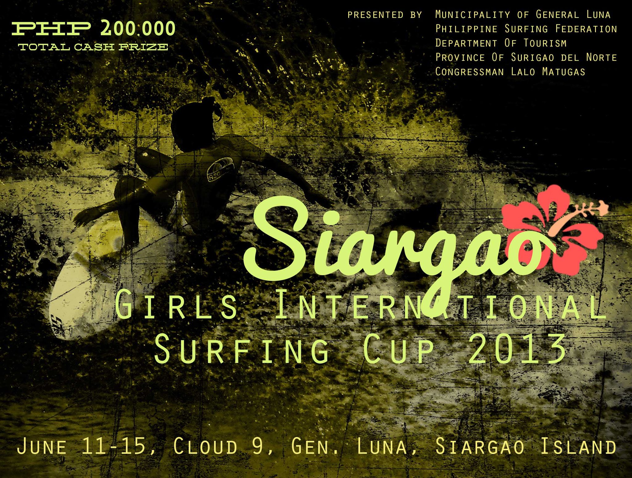Calling all girls who are surfing enthusiast.. Join the Girls International Surfing Cup 2013 on June 11-15, 2013 at the beautiful island of Siargao. Save the date and see you there!