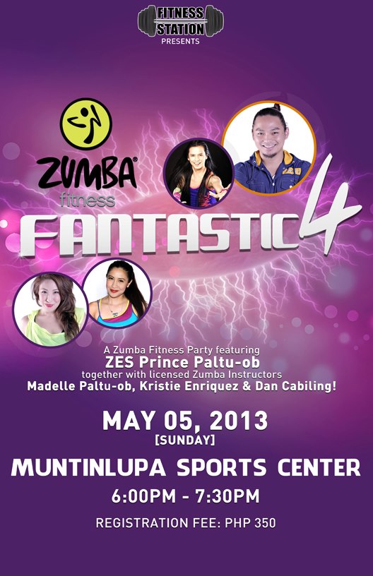 This May 5, 2013, Zumba Fitness Fantastic 4 is happening at Muntinlupa Sports Center. Join this exhilarating, calorie burning dance fitness party together with the four licensed Zumba Instructors. Check out details below.