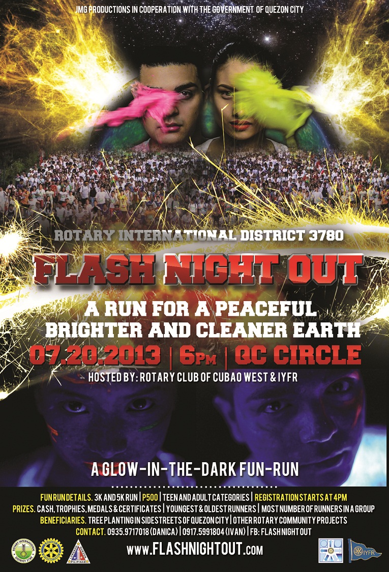 This July 20, 2013, Flash Night Out Fun Run is happening at Quezon City Memorial Circle. This is a glow in the dark fun run for a peaceful, brighter and cleaner earth. Check out details below.