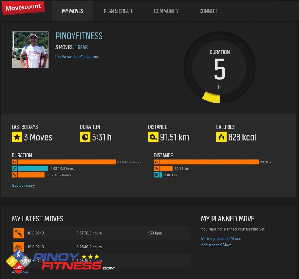 After a quick install process, Movescount.com quickly summarizes all of my training results and categorizes them according to training type (Swim, Bike, Run, Multisport).