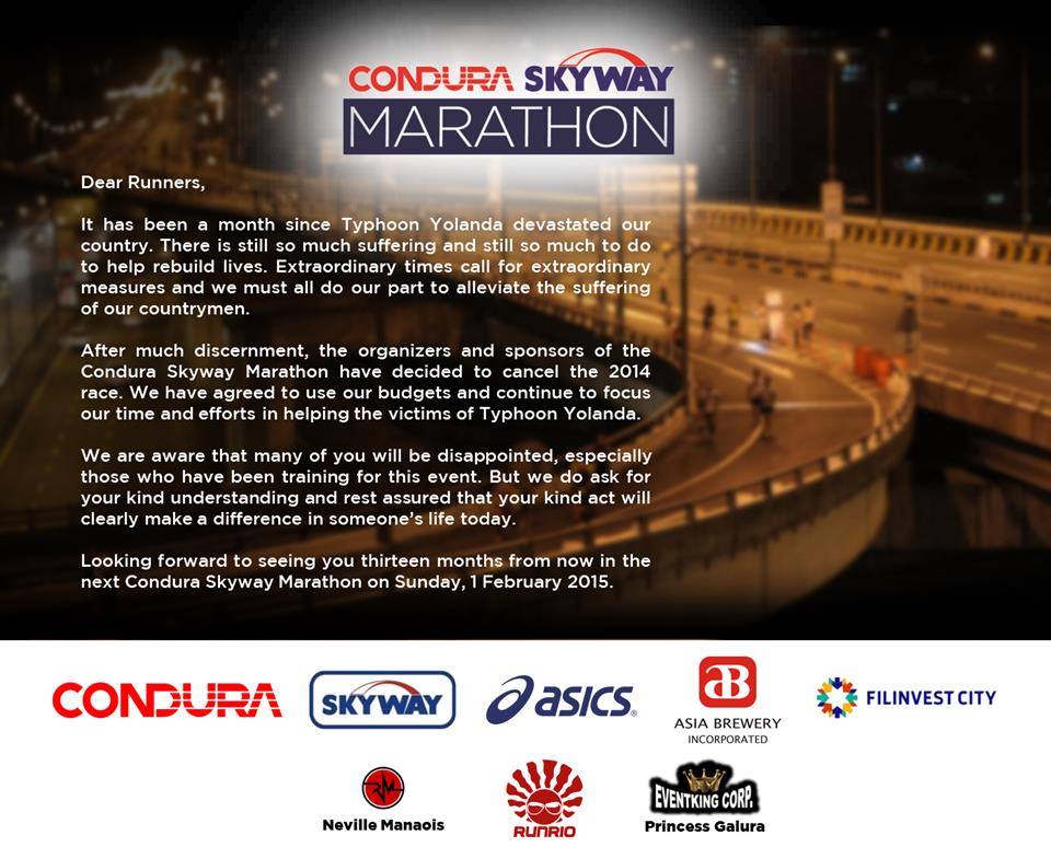 News Flash! Condura Skyway Marathon 2014 is Cancelled! Here’s the Official Press Release: