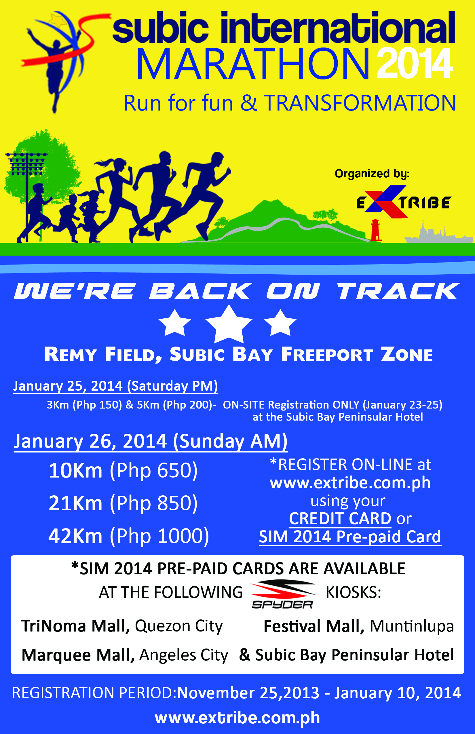 b. EXACT TIME & VENUE will be announced on extribe.com.ph & facebook.com/SubicInternationalMarathon