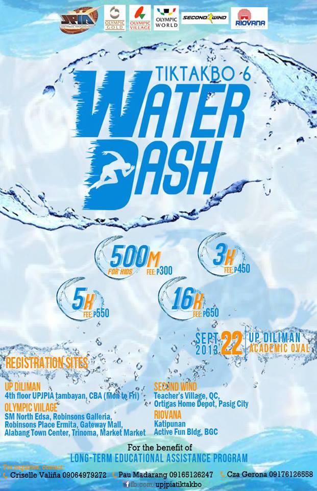 Avail of Tiktakbo 6: Water Dash’s Buddy Promo now! Register for 2 at the UP JPIA Tambayan and get 60 pesos off your total registration fee!