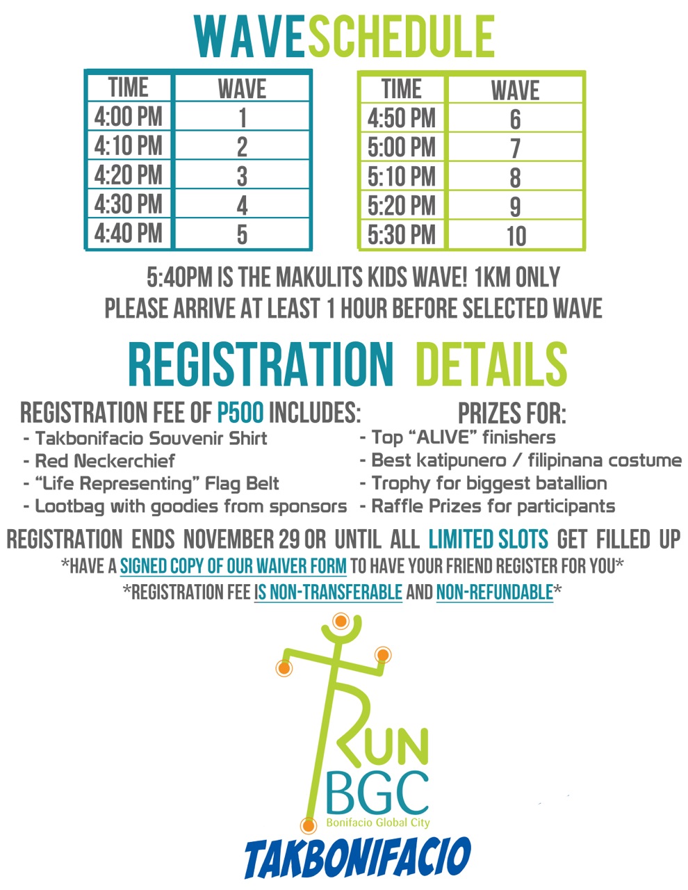 This year, since BGC Passionfest and RUN BGC coincides with the 150th birth year anniversary of Andres Bonifacio the RUN will have a Filipino twist theme to honor our hero.