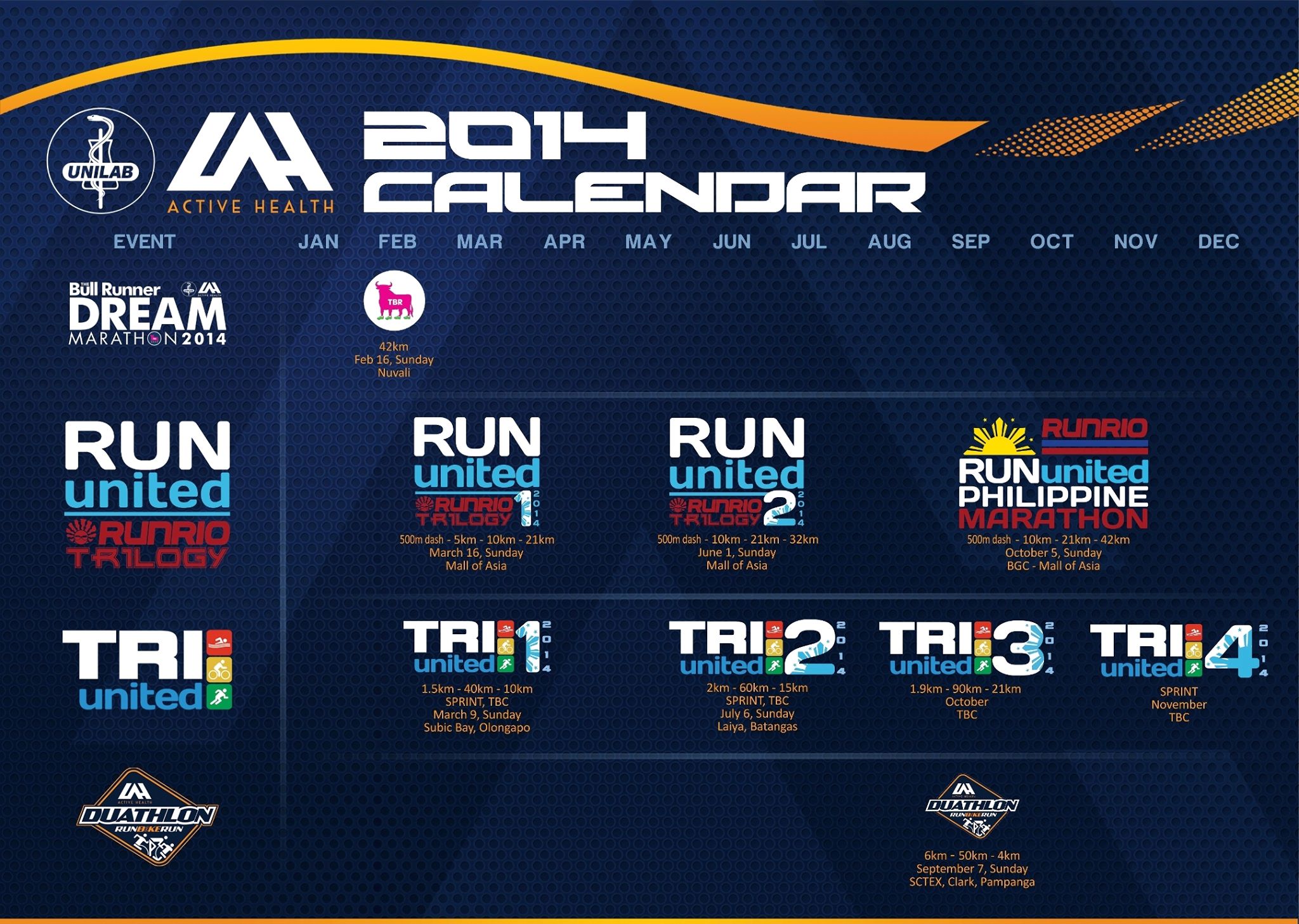 Here it is! Unilab ActiveHealth just released their 2014 Race Calender for the Run United and Tri United series! Check them out and Save the date!