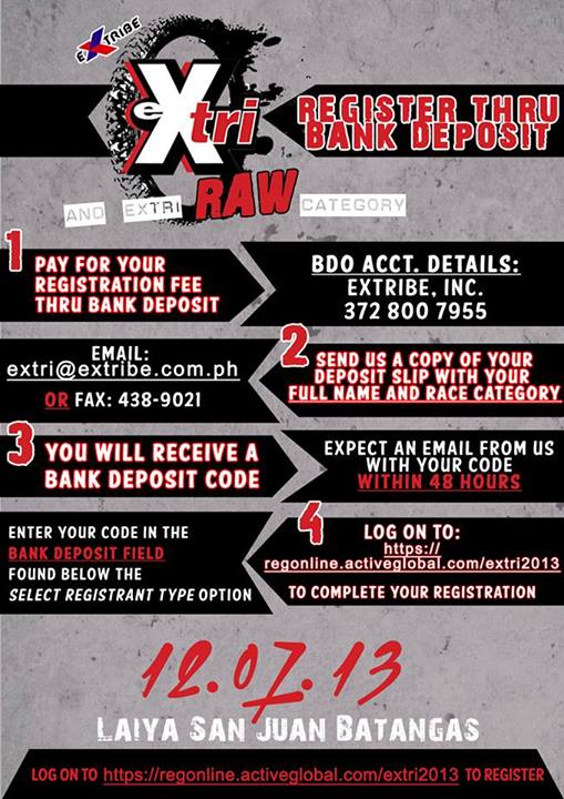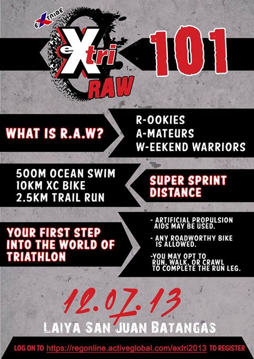 Want to experience an off-road Triathlon event!? Checkout eXtri happening on December 7, 2013! Are you a beginner!? then eXtri RAW (Rookies, Amateurs, Weekend Warrior) could be for you! Check it out!