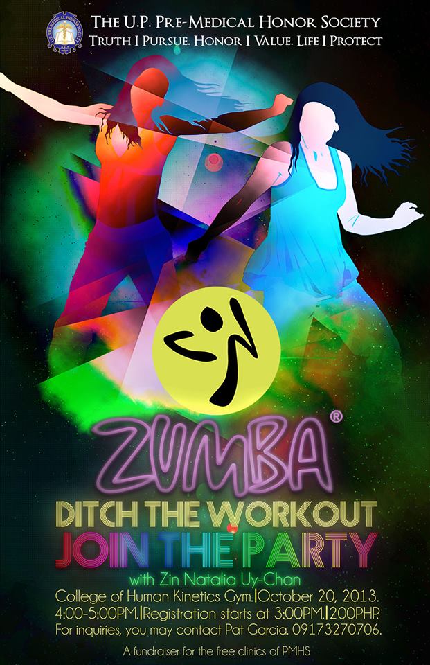 The UP Pre-Medical Honor Society brings you zero work and 100% fun in a ZUMBA party fundraising event with Zin Natalia Uy-Chan. This event is for the benefit of our free medical missions, blood drives, and other outreach programs.