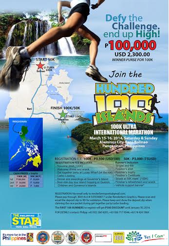 The FIRST 100 RUNNERS to register will get P300 DISCOUNT until January 30, 2014. Registration starts on January 2, 2014.