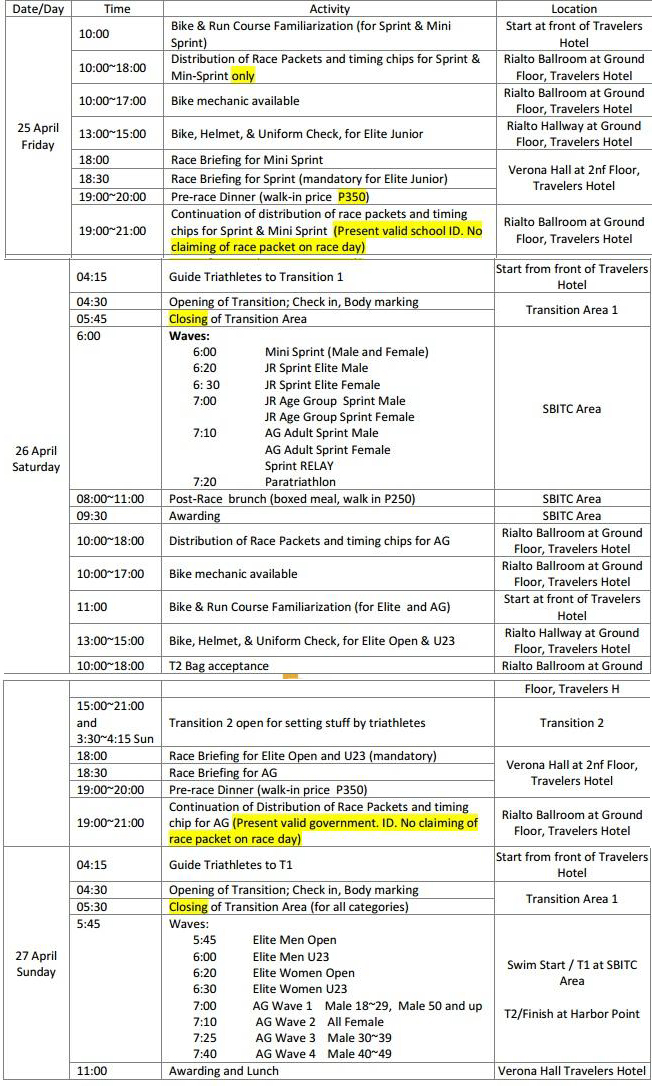 | Sprint & YOG | P3,000 | P3,500 | P4,500 | US$125 |