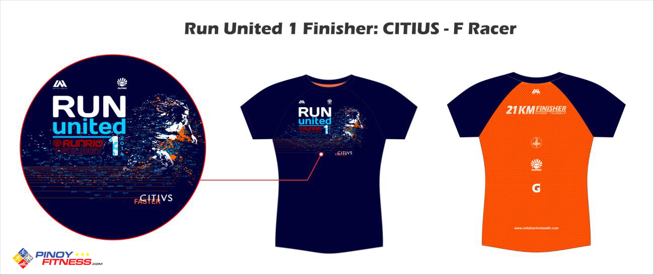 Note: CITIUS is the Latin word for SPEED, which is the theme for RUN UNITED 1, that is why if you look closely at the Finisher’s Shirt Design print, you can see the symbol of a runner shedding of his race time.