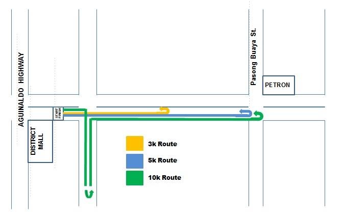 Starting line at Daang Next to The District Mall going to Pasong Buaya. There are 3K, 5K and 10K events for a very affordable price. the amount is designed for Elementary and Secondary students of ISSIparticipating schools; however, the organizing committee decided to open for everyone who just want to run and enjoy the experience.