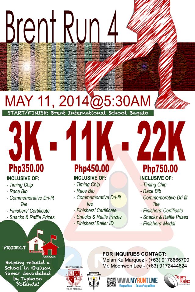 Brent Run 4 is for the benefit of PROJECT Schools for Schools helping rebuild a school in Guian, Samar heavily devastated by typhoon Yolanda.