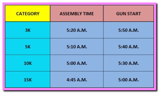 Inclusive of Race Bib, Singlet, Race Guide and Finisher’s Medal