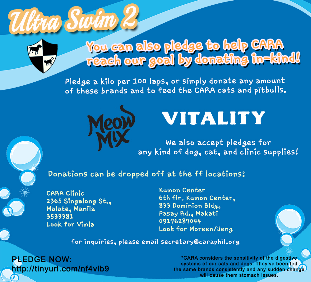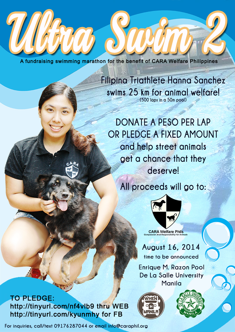 Let’s all support Filipina Triathlete Hanna Sanchez as she swims 25KM (500 laps in a 50m pool) for animal welfare! An Ultra Swim for the benefit of CARA Welfare Philippines.