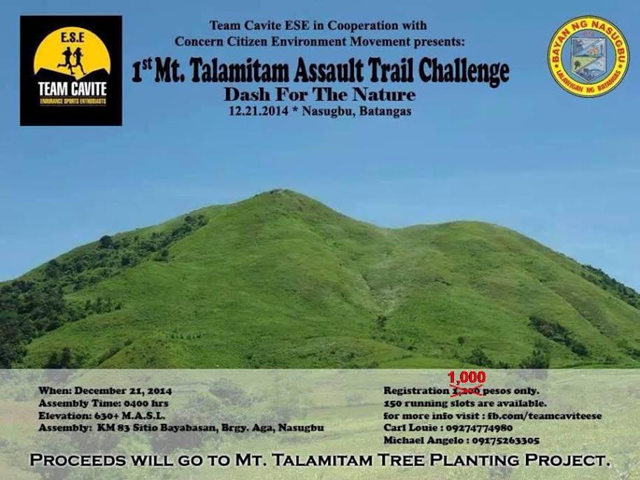 Here’s another thing. Because of public insisted requests, from 10km #1stMtTalamitamAssaultTrailChallenge is now a 10MILER Mountain Run. We promise to give the best run before the year ends.