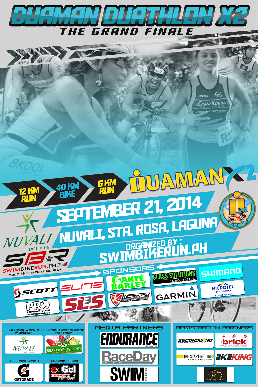 The Duaman Duathlon X2, the fourth and final leg of the SBR.ph Tri Series 2014, is happening on September 21, 2014 at Nuvali, Sta. Rosa, Laguna. The event is a 12k Run, 40k Bike, and a 6k run.