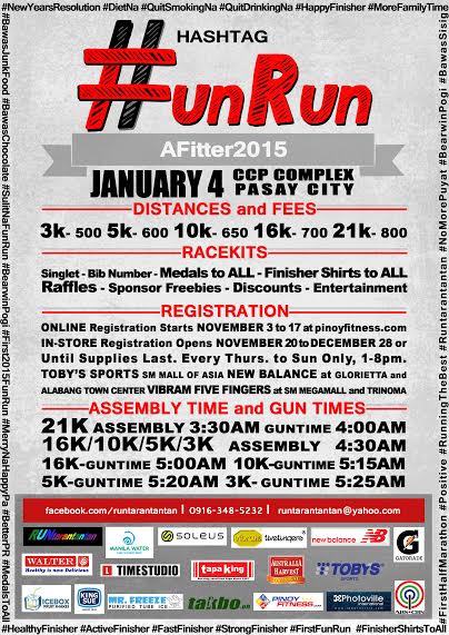 Hashtag Fun Run is happening on January 4, 2015 at CCP complex, Pasay City. Let’s run for a fitter 2015!
