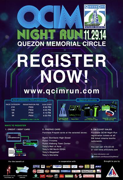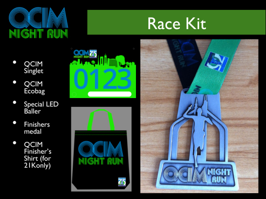“The QCIM Night Run will be held this November 29, 2014. Between now and the date of the run, we will have three draws for the registered runners. It is our way of giving back to our loyal runners who have been with us since 2010 and rewarding newbies to the QCIM.”