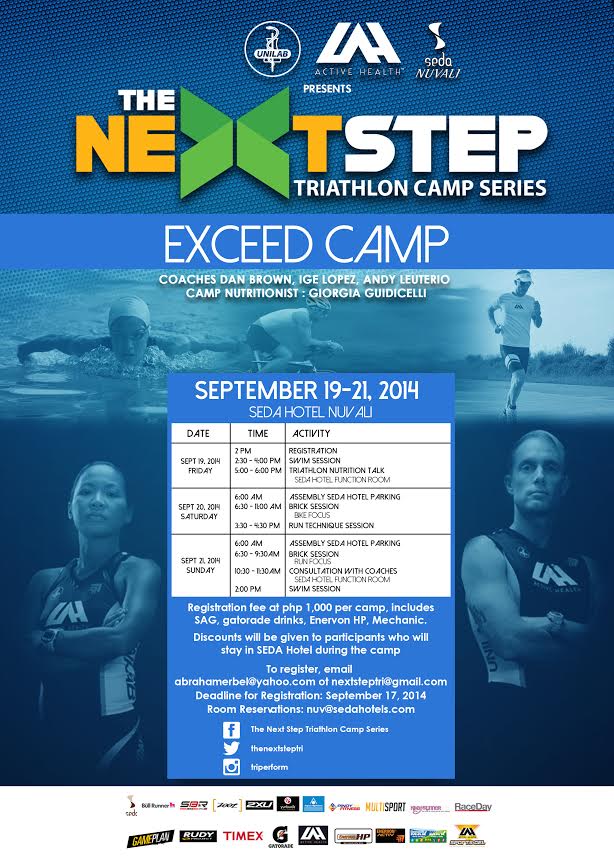 Learn to SWIM-BIKE-RUN with the best coaches in the country, Coaches Dan Brown, Ige Lopez, Andy Leuterio and Nutritionist Giorgia Guidicelli. Happening on September 19-21 at Seda Hotel in Nuvali.