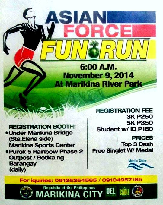 Asian Force Fun Run is set to happen on November 9, 2014 at Marikina River Park.
