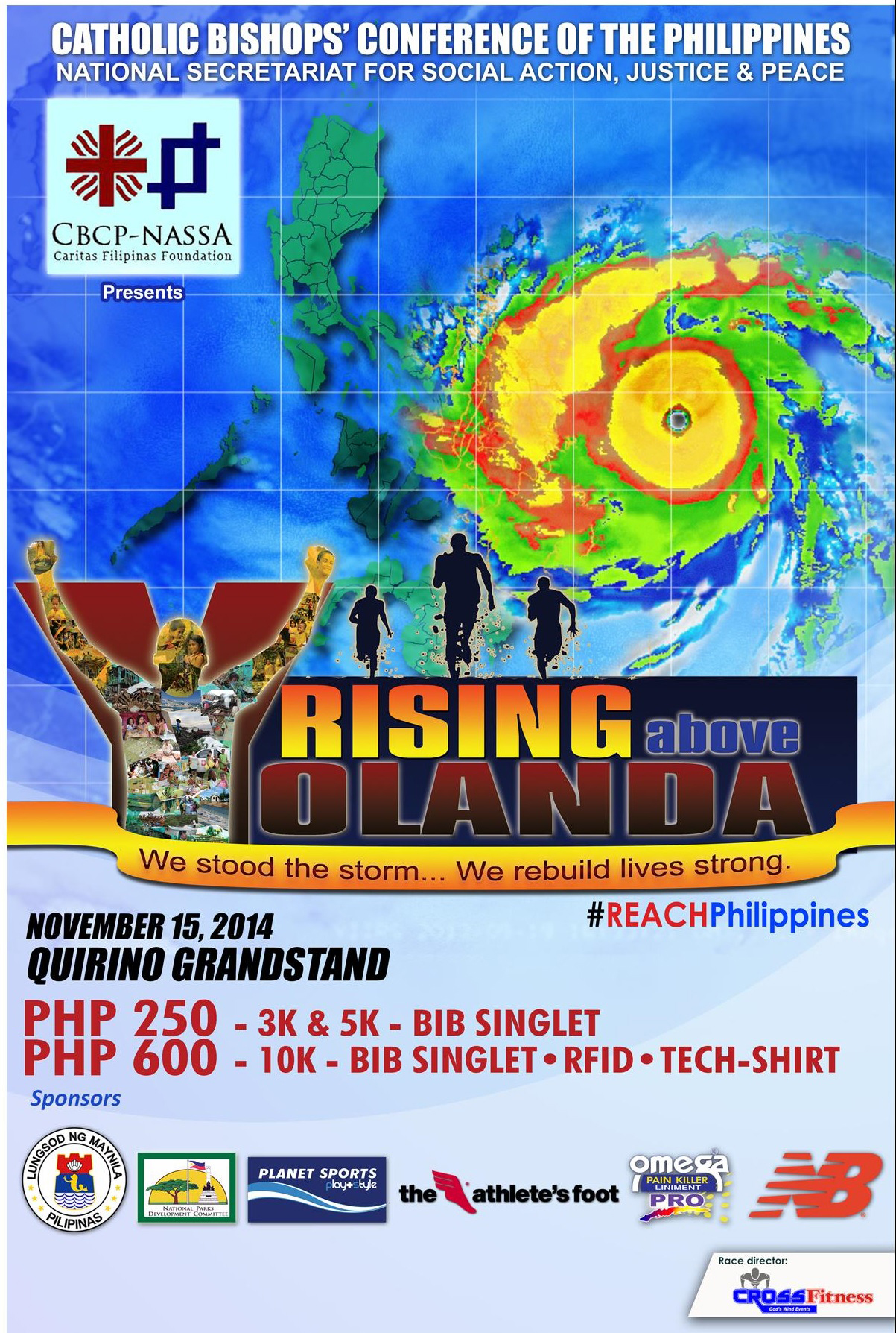 The Catholic Bishop’s Conference of the Philippines – National Secretriat for Social Action (CBCP-NASSA) presents “Rising Above Yolanda”, a fun run that celebrates the resilience of the Filipino spirit. This event is happening on November 15, 2014 at Quirino Grandstand.