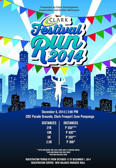 Clark Festival Run 2014, presented by Clark Development Corporation & Hubble Multisport, is set to happen on December 6, 2014 at CDC Parade Grounds,Clarkfield,Pampanga.