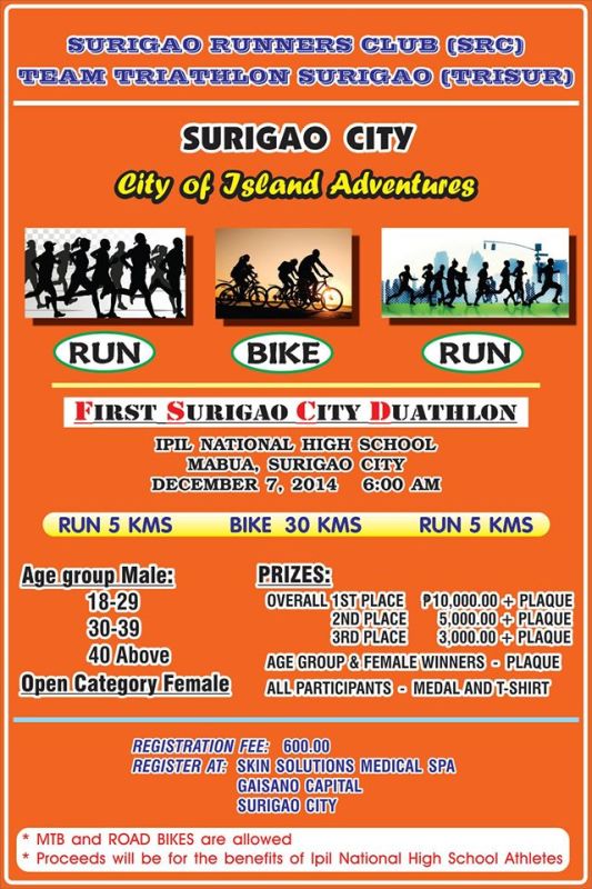 The First Surigao City Duathlon is happening on December 7, 2014 in Surigao City.