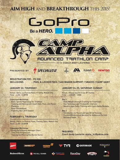 AIM HIGH and BREAKTHROUGH this 2015 with the first leg of the GoPro Camp Alpha triathlon training series. Presented by Specialized, the series kicks off on the following dates: