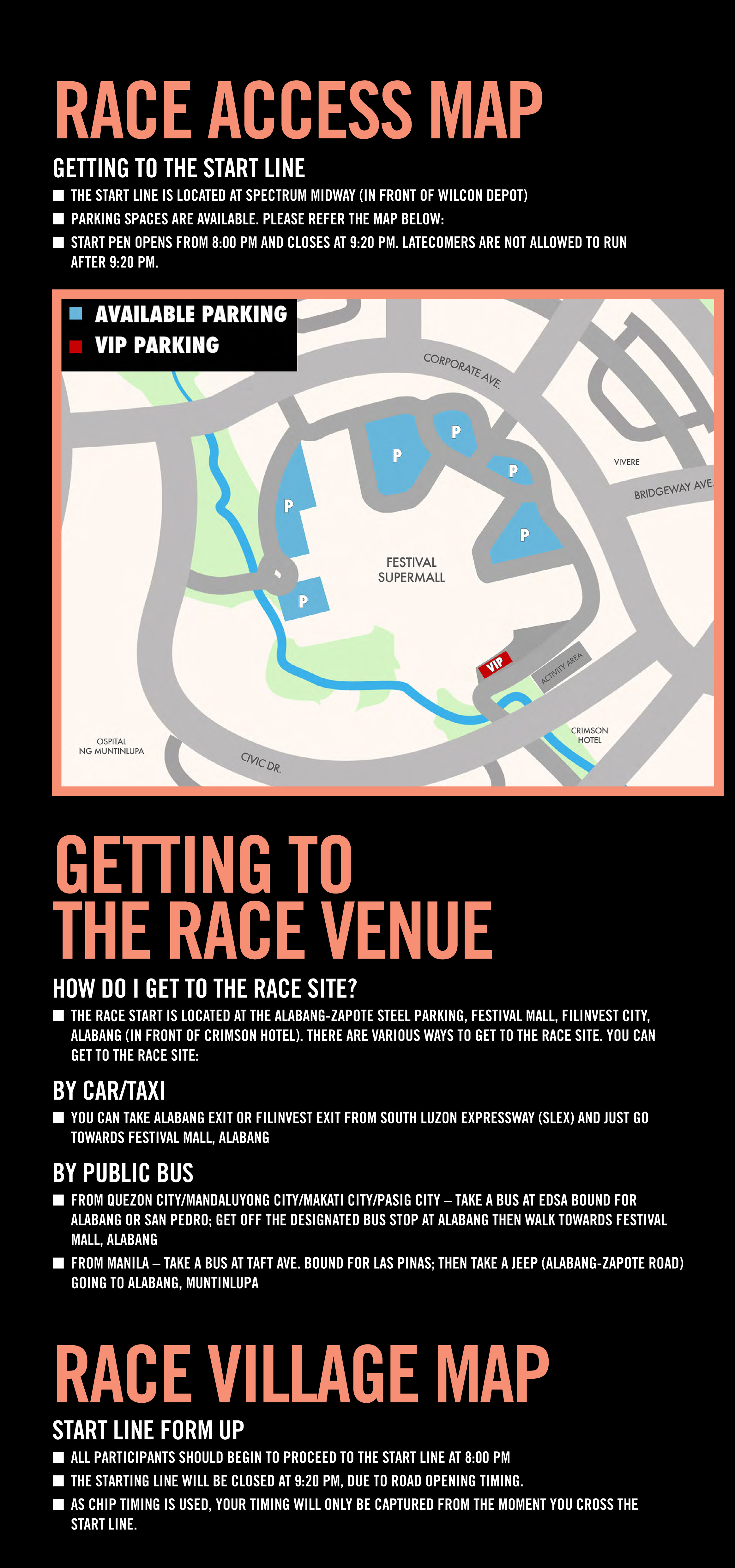 – All race participants must collect their race pack during the Nike Women’s 10K Run Race Entitlement Pack collection from April 20, 2015 to May 3, 2015.