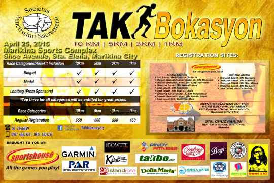 It is for this reason that their Congregation will hold a fund raising event called TAKBOKASYON: A FUN RUN FOR A CAUSE which is scheduled on April 25, 2015 at Marikina Sport complex, Shoe Avenue, Sta. Elena, Marikina City. Proceeds of this event will fund the education of the seminarians.