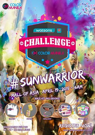Are you ready for another challenge? Color Manila is taking their color run to the next level with Watsons! The Watsons-Colormanila Challenge is happening on April 19, 2015 in SM Mall of Asia.
