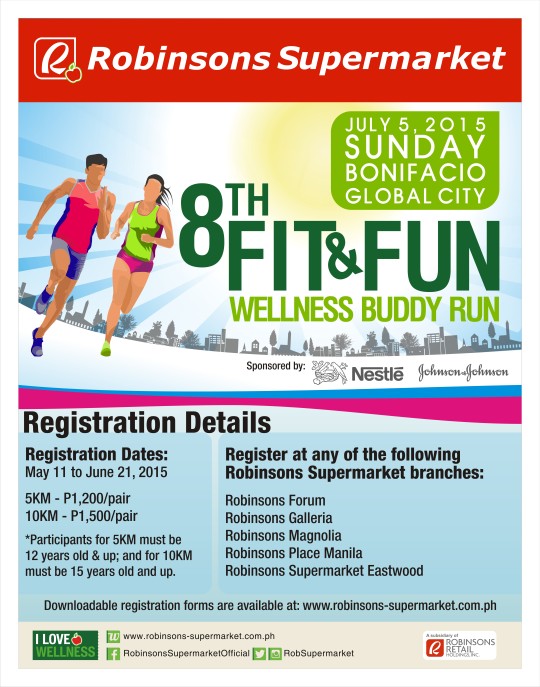 The Robinson’s Supermarket Fit & Fun Wellness Buddy Run is on it’s 8th year. Race with your running buddy and finish the race together on July 5, 2015!