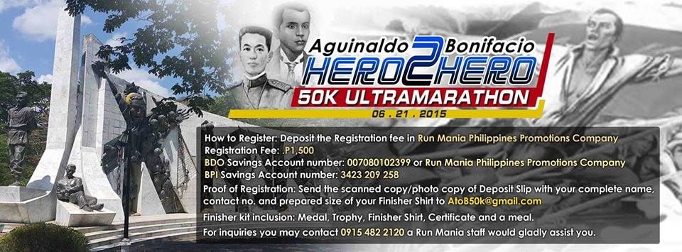 The Caliraya Runners, in cooperation with Run Mania Philippines Promotion, will be conducting Aguinaldo To Bonifacio 50K Ultramarathon on June 20, 2015.