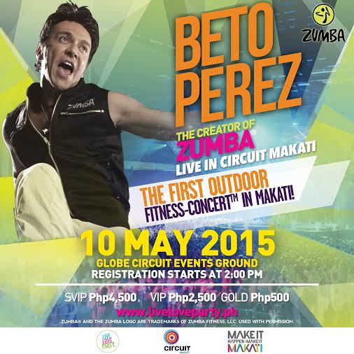Beto and his team of Zumba® celebrity instructors, musicians and,international DJs will gather together in Circuit Makati for the first outdoor Fitness-Concert™ of its kind in South East Asia. Zumba® enthusiasts will look forward to live music and inspiring movements, and witness a historic event that will truly uplift the local fitness culture.