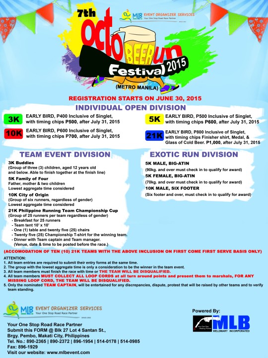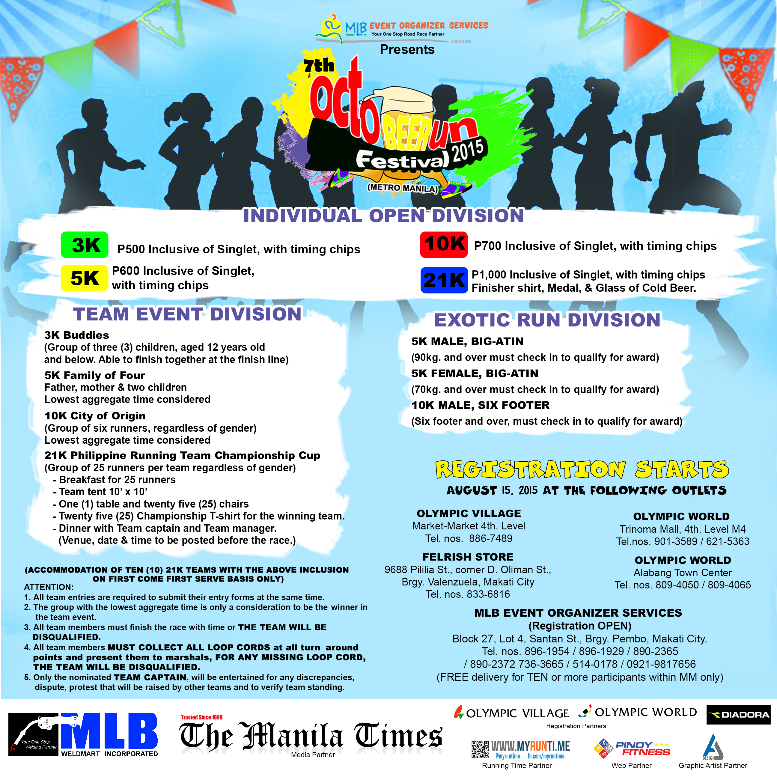Mark your calendar this October as MLB Event Organizer Services brings you Octoberun Festival happening on October 25, 2015 at the Bonifacio Global City.