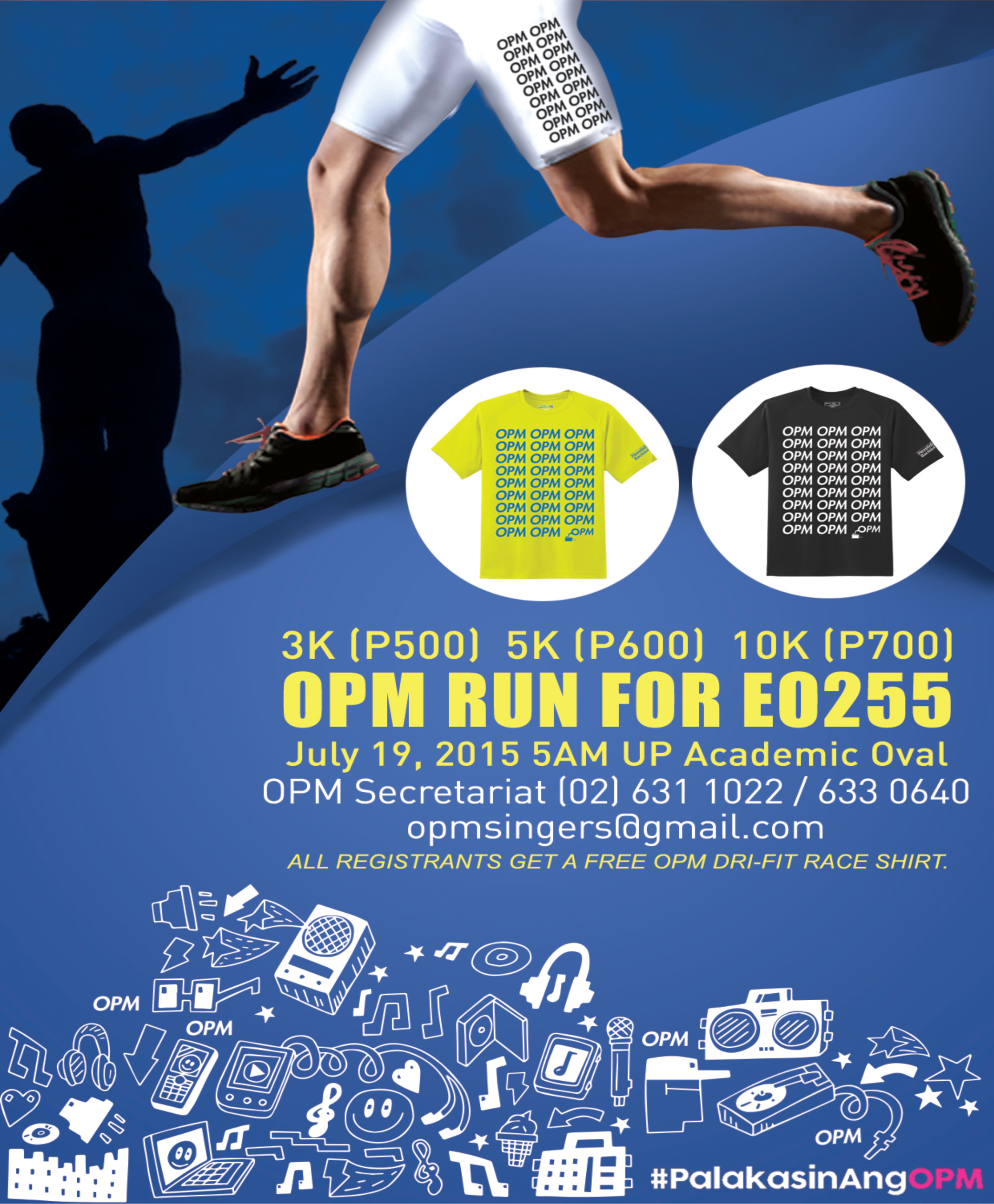 The Organisasyon ng Pilipinong Mang–aawit (opm.org.ph), the country’s leading non-profit organization of Professional Singers will be conducting “OPM Run For EO255”, a campaign run for stricter implementation of Executive Order 255.