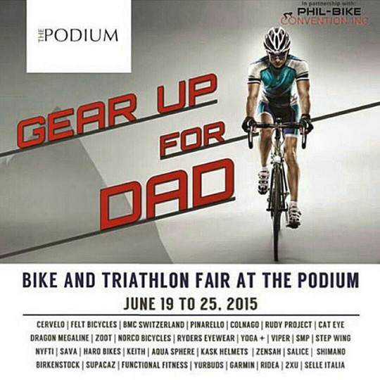 Time to Gear up for Dad! Check out the Bike and Triathlon Fair happening at the Podium this June 19 to 25, 2015. Get amazing deals and discounts from the top Bike and Triathlon brands in the Country.
