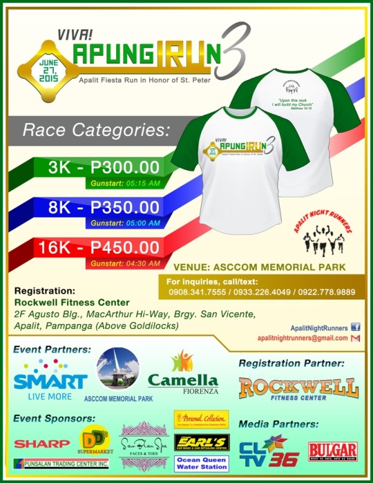 Viva APUNG IRUn 3 is happening on June 27, 2015 at ASCCOM Memorial Park, Mac Arthur Highway, Sampaloc, Apalit, Pampanga.