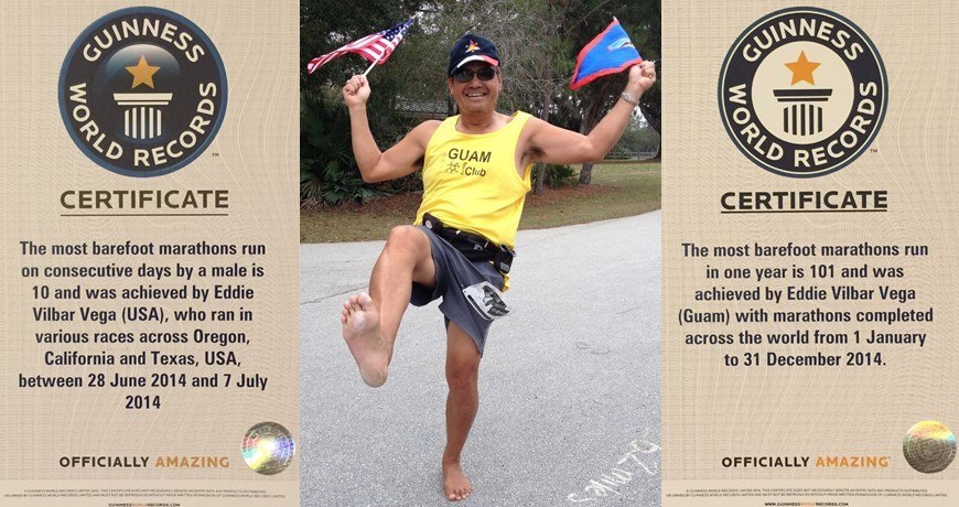 Meet Eddie Vera also known as the “Barefoot Bandito”, dubbed by Western Union as a modern day pinoy hero and a Filipino migrant in the US. In 2014, Eddie ran over one hundred (101 to be exact) marathons in barefoot and how holds the Guinness World Record for “Most Barefoot Marathon Runs in One Year”.