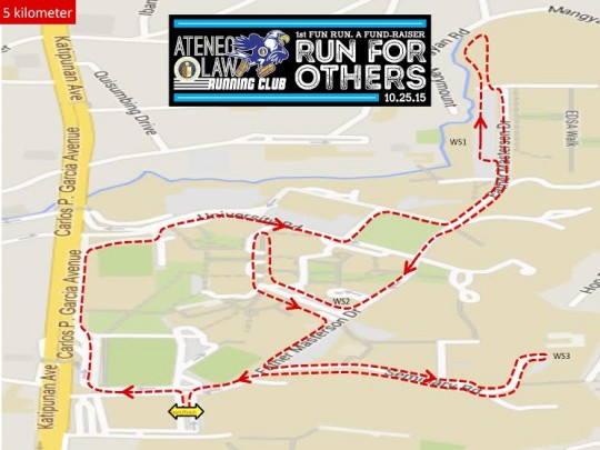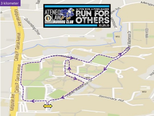 The 1st Fun Run of the Ateneo Law Running Club is a fund-raiser for the benefit of the scholarship program and bar operations of the Ateneo Law School. It is set on Sunday, October 25, 2015 at the Ateneo Loyola Campus.